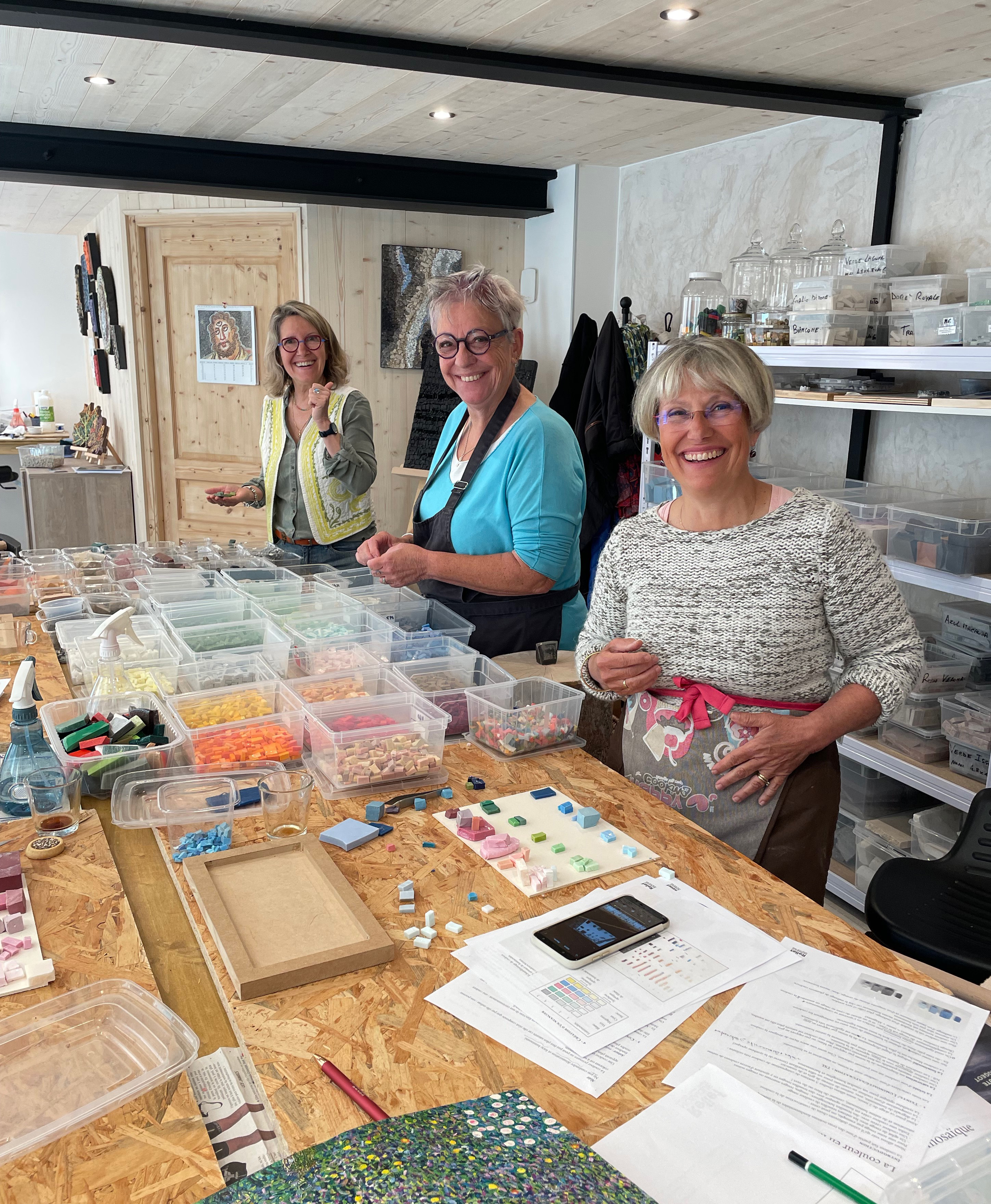 Vous y retrouverez de nombreuses matières, des postes de travail spacieux et des conseils avisés pour la création de votre future mosaïque.